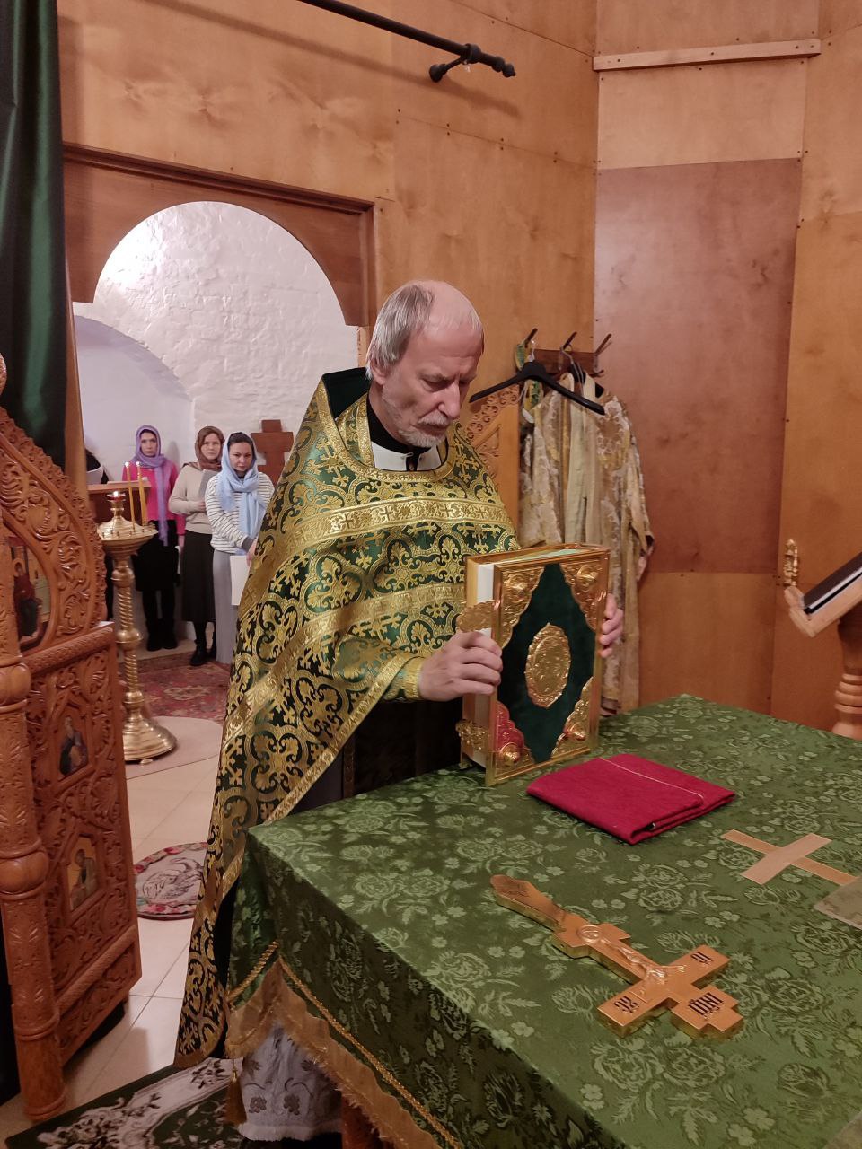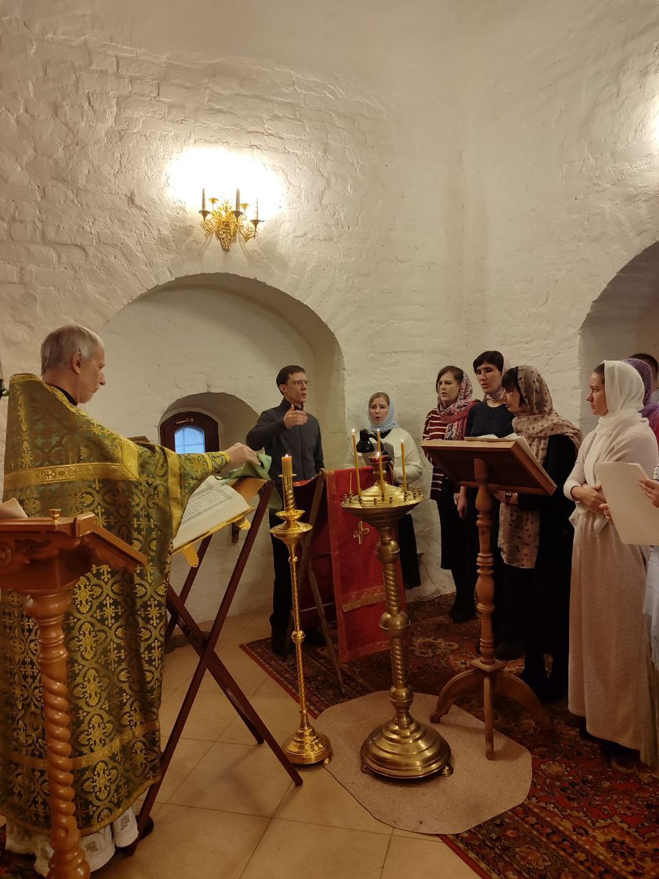 На Литургии были молодые прихожане храма Святителя Николая Мирликийского в Дербеневе, г. Москва, где прежде служил Владыка Игнатий. Группа прихожан приехала в монастырь в субботу. Приводили в порядок территорию возле монастырской гостиницы, а затем были на воскресном богослужении.