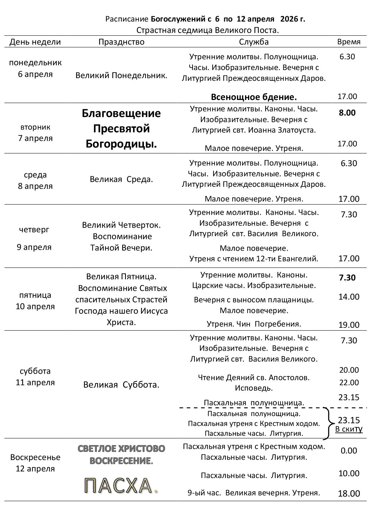 - Расписание богослужений