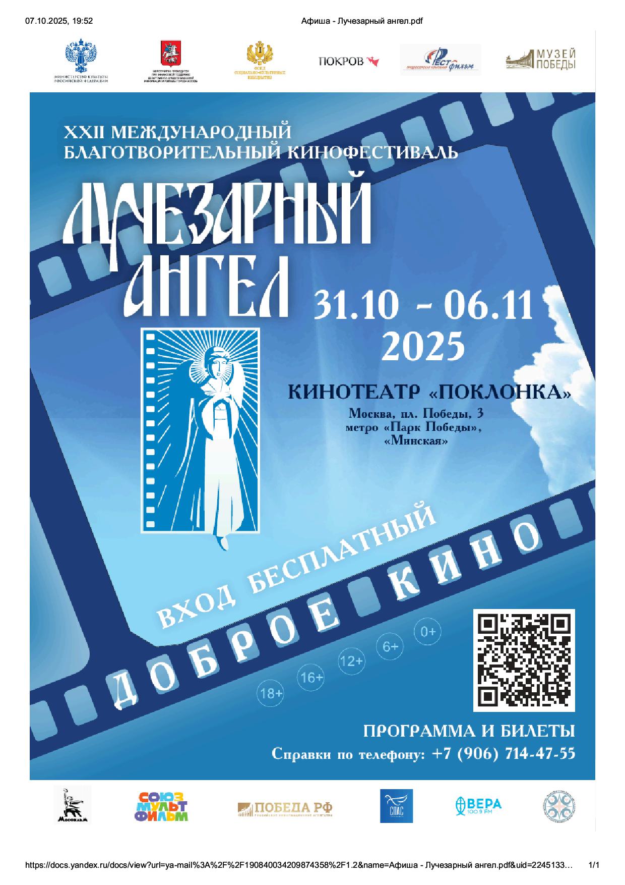 с 31 октября по 06 ноября 2025 года пройдет благотворительный кинофестиваль Лучезарный Ангел.