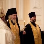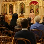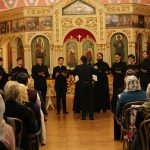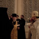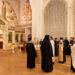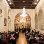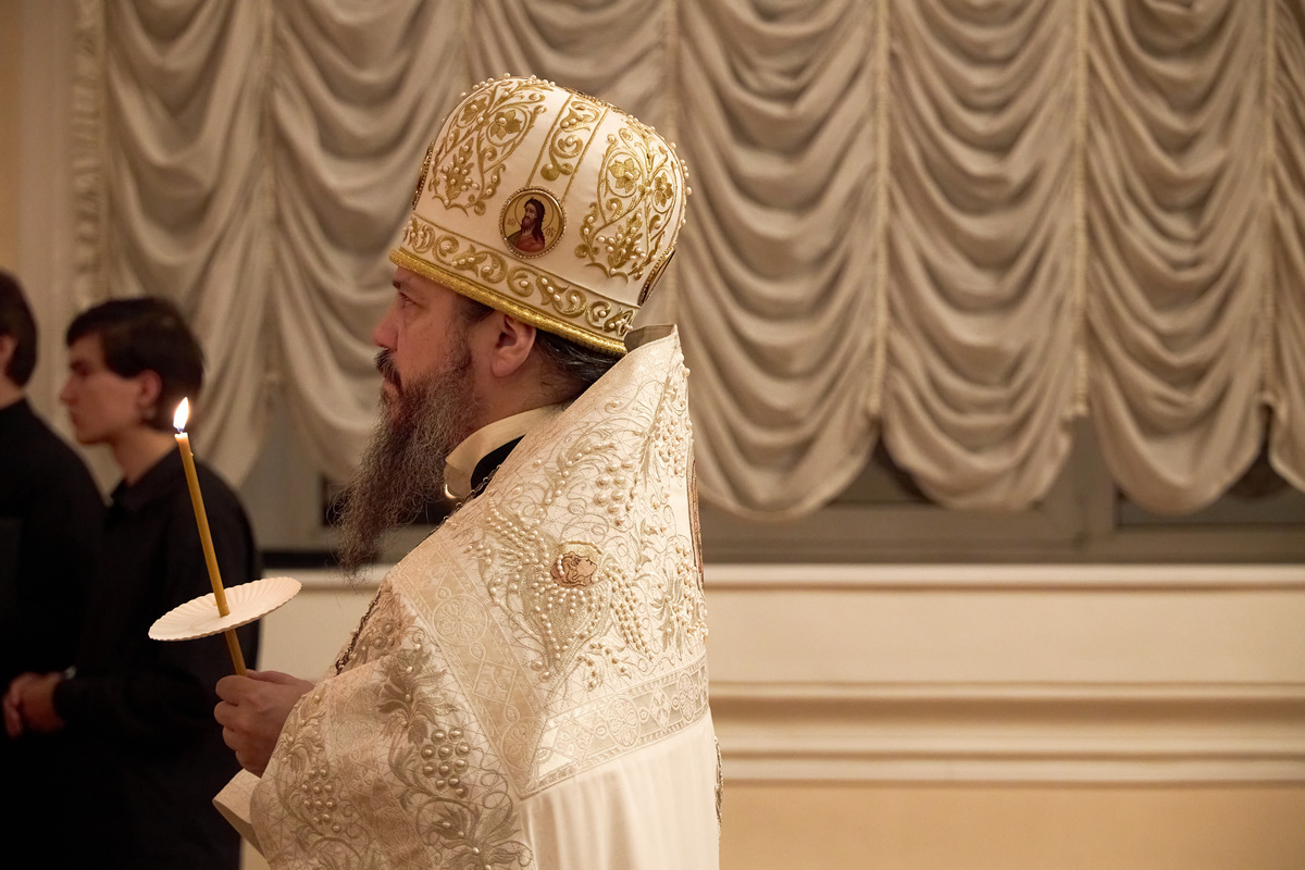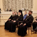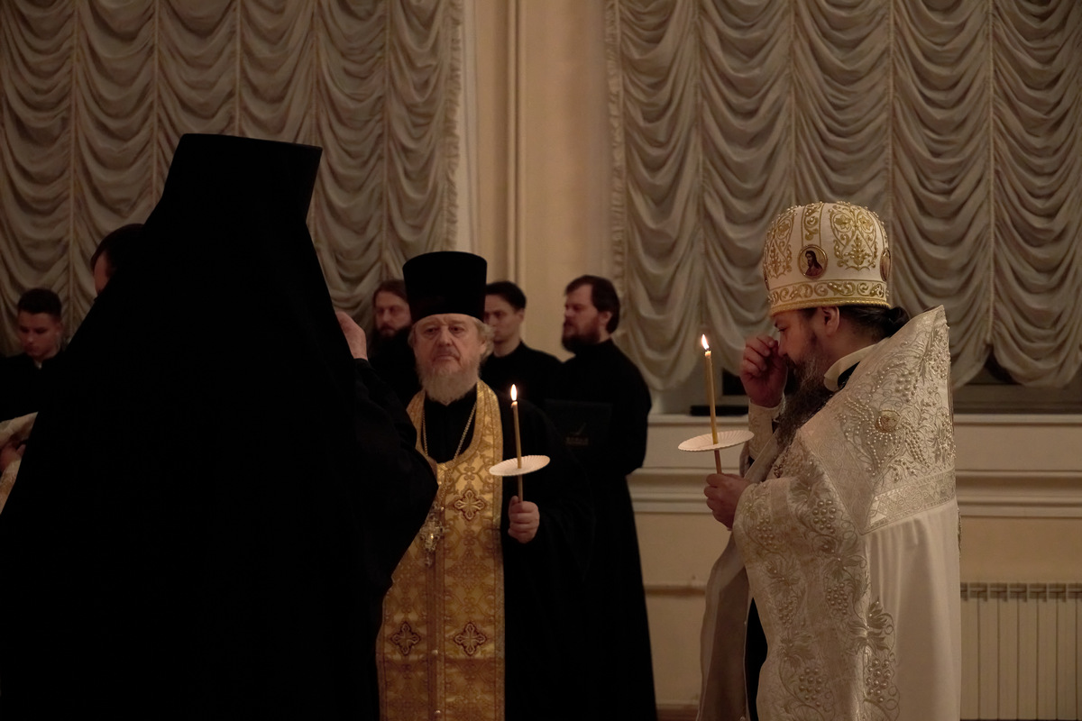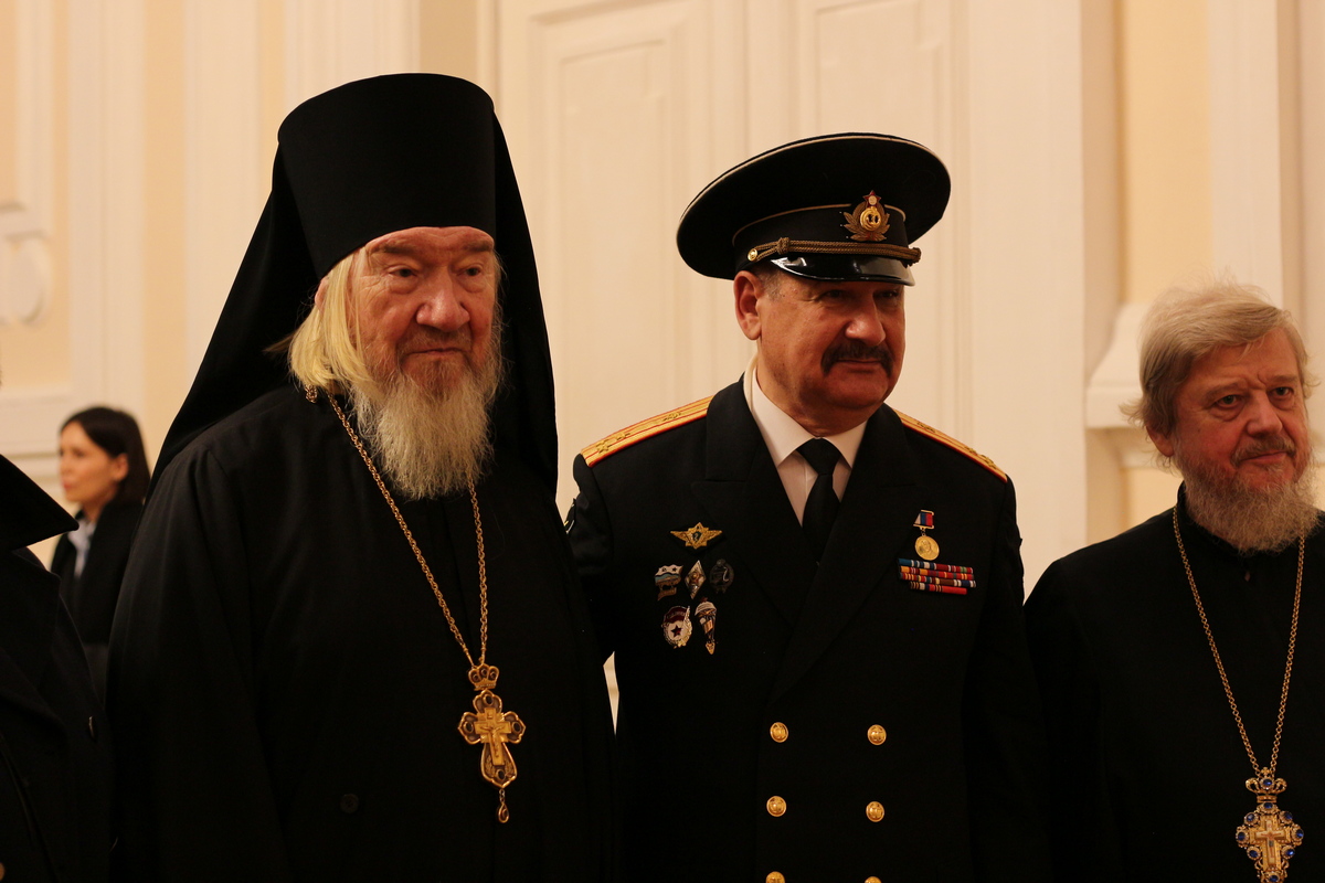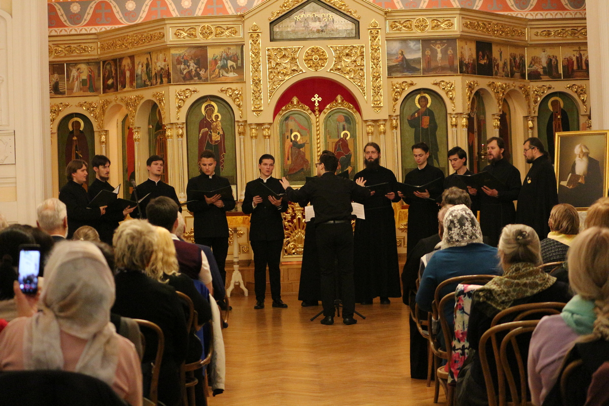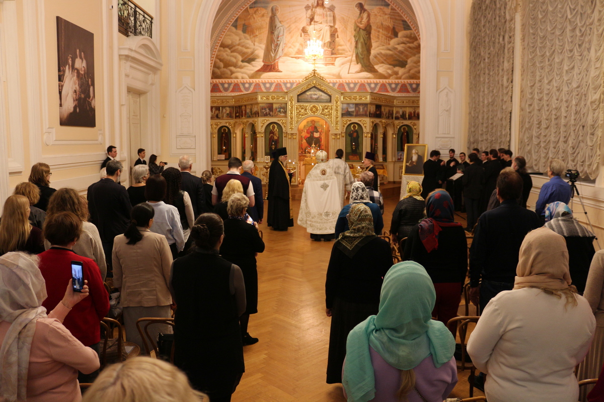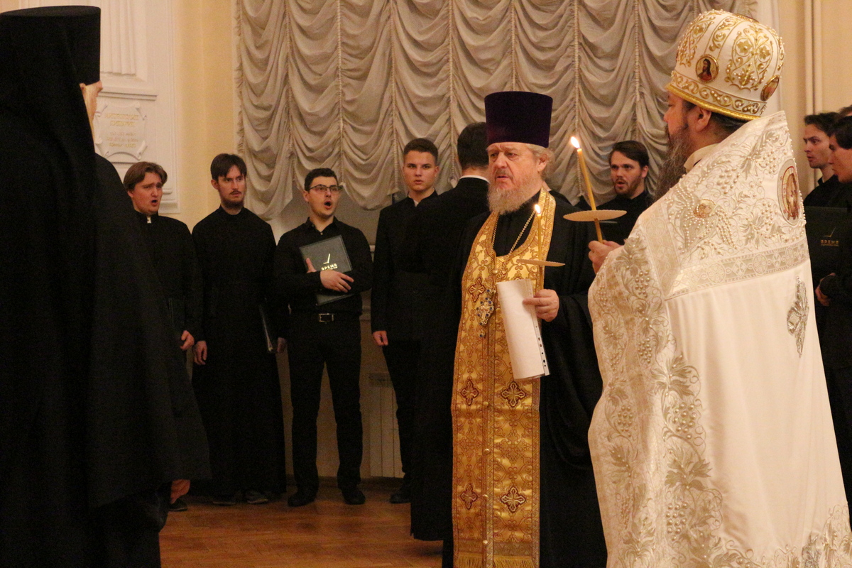 Торжественный вечер начался служением заупокойной литии, которую совершили архимандрит Сергий, архимандрит Пафнутий, протоиерей Сергий Киселев, настоятель храма Святителя Николая Мирликийского Патриаршего подворья в Здехово, и священник Кирилл Киселев, руководитель центра «Кафедра теологии».