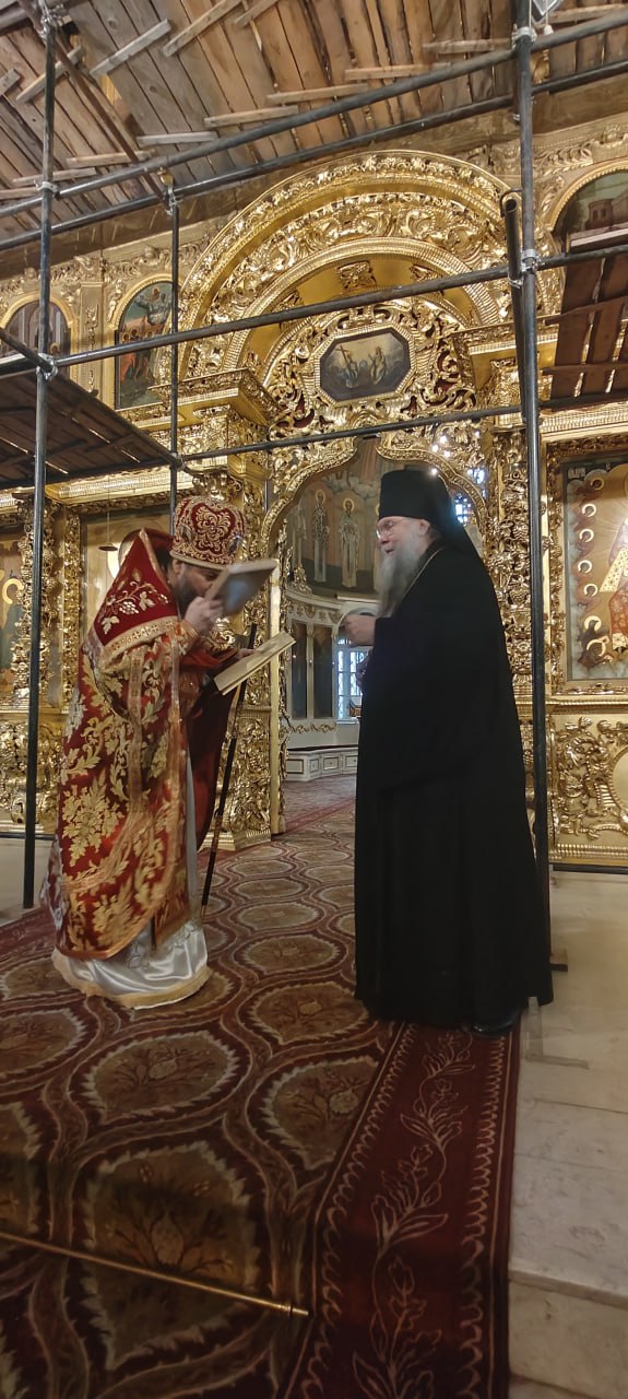 По благословению митрополита Каширского Феогноста, предcедателя Синодального отдела по монастырям и монашеству, по окончании Божественной Литургии наместник Ново-Иерусалимского Воскресенского ставропигиального мужского монастыря архимандрит Феофилакт зачитал поздравительное послание Патриарха Московского и Всея Руси Кирилла.