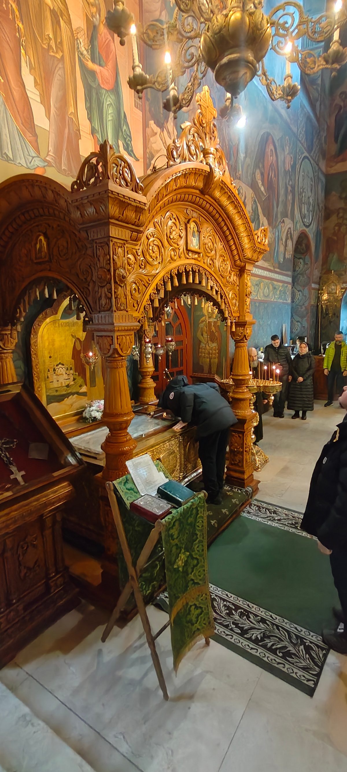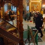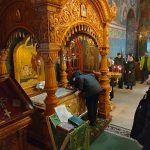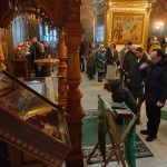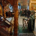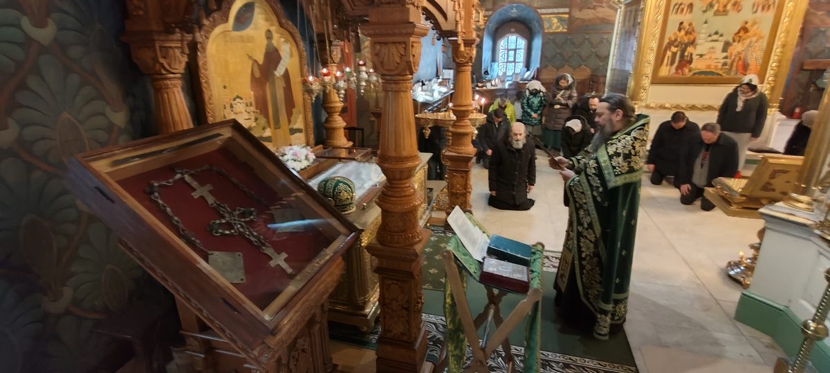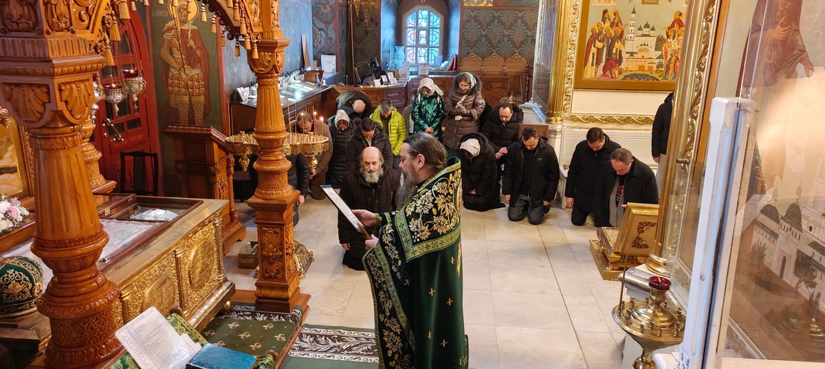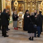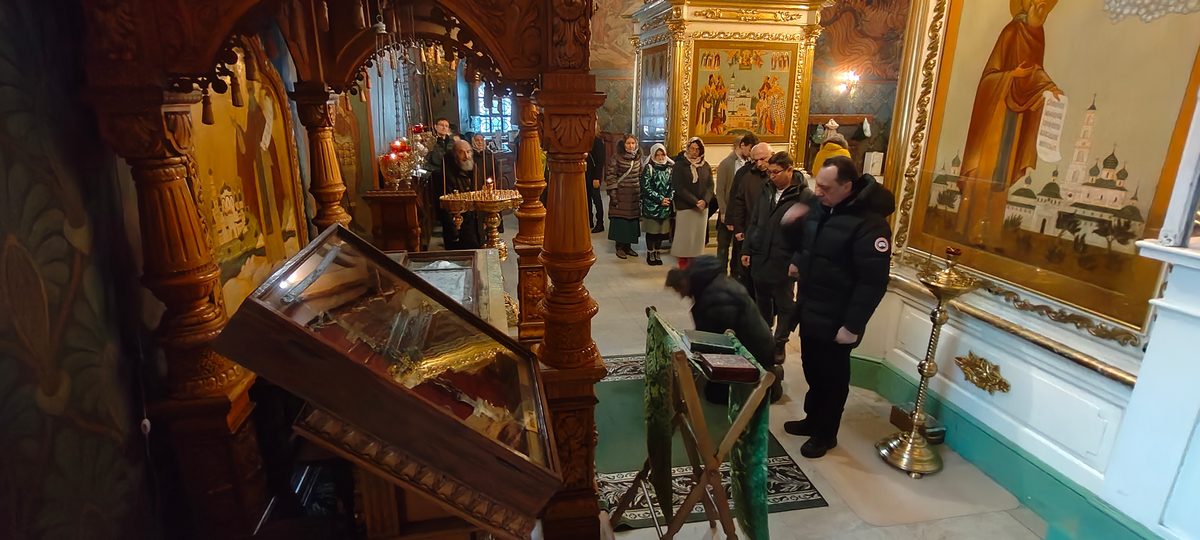По завершении экскурсионной программы наместник монастыря архимандрит Сергий отслужил молебен преподобному Иосифу Волоцкому в Успенском соборе, у раки с мощами преподобного. Паломники приложились к мощам и получили благословение от отца наместника. Затем гостей пригласили на трапезу.